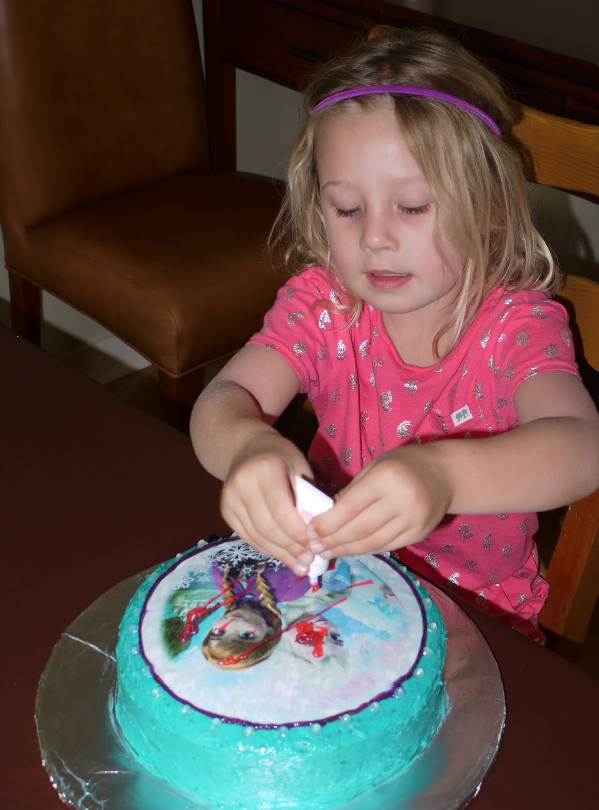 final touches on the Elsa cake |